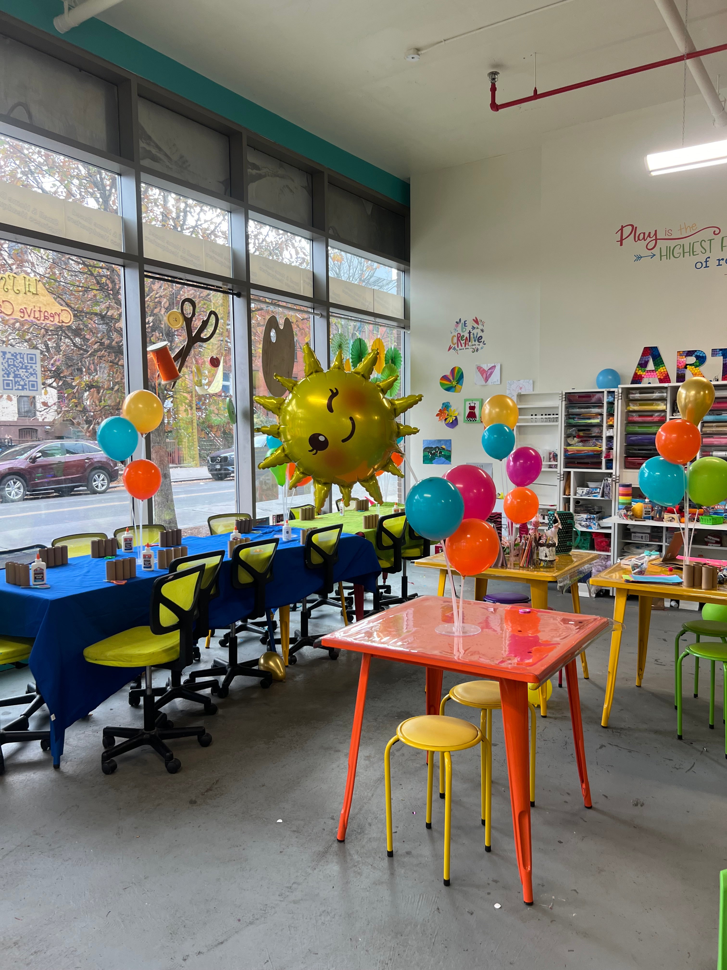 Cleanup is required within the time frame. Shop will be decorated with Tabletop Balloons, Cups, Plastic Spoons, Forks, Knives, Paper Plates and Napkins, Water and the Craft activity and supplies to create is provided.